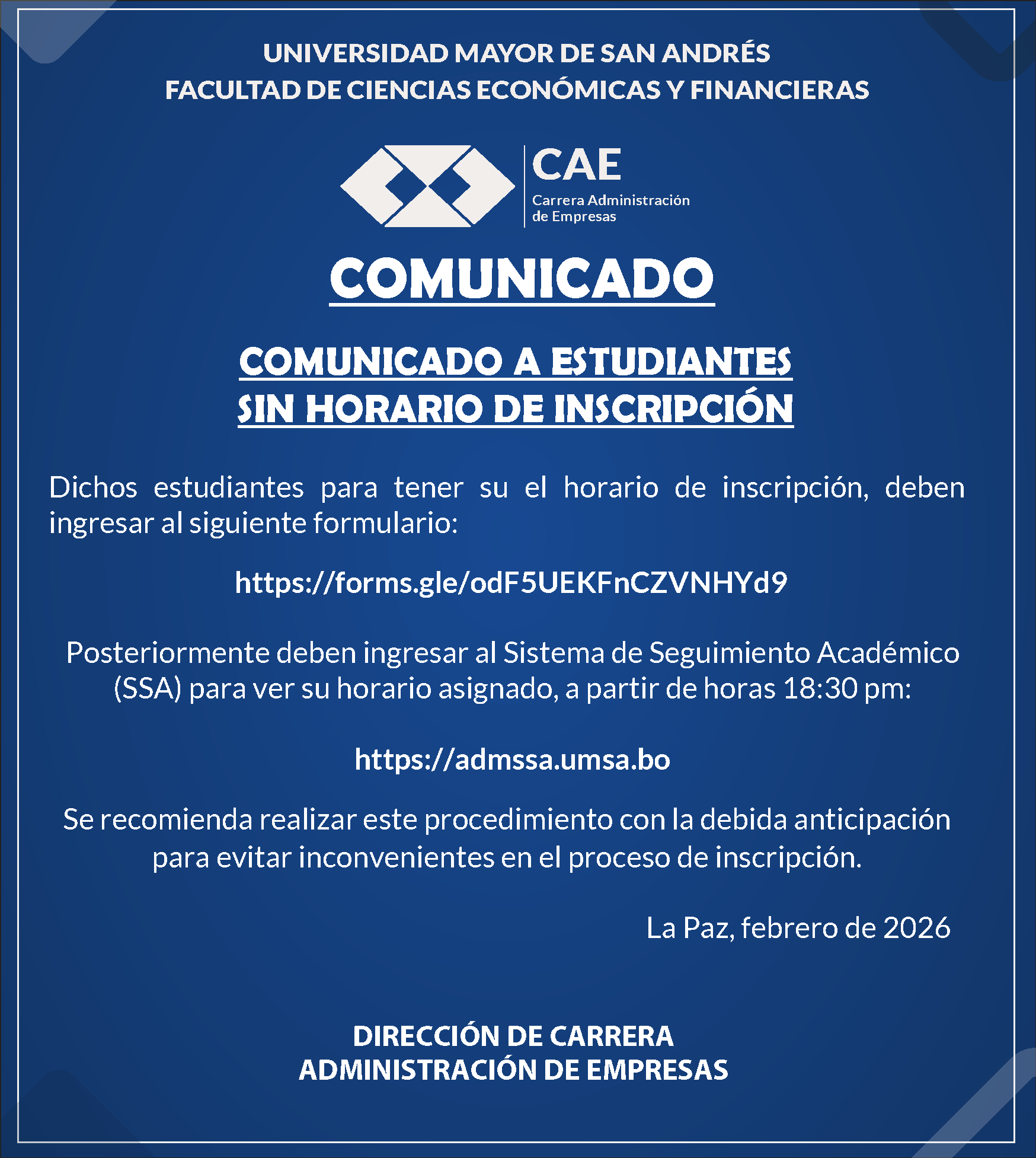 COMUNICADO A ESTUDIANTES SIN HORARIO DE INSCRIPCIÓN