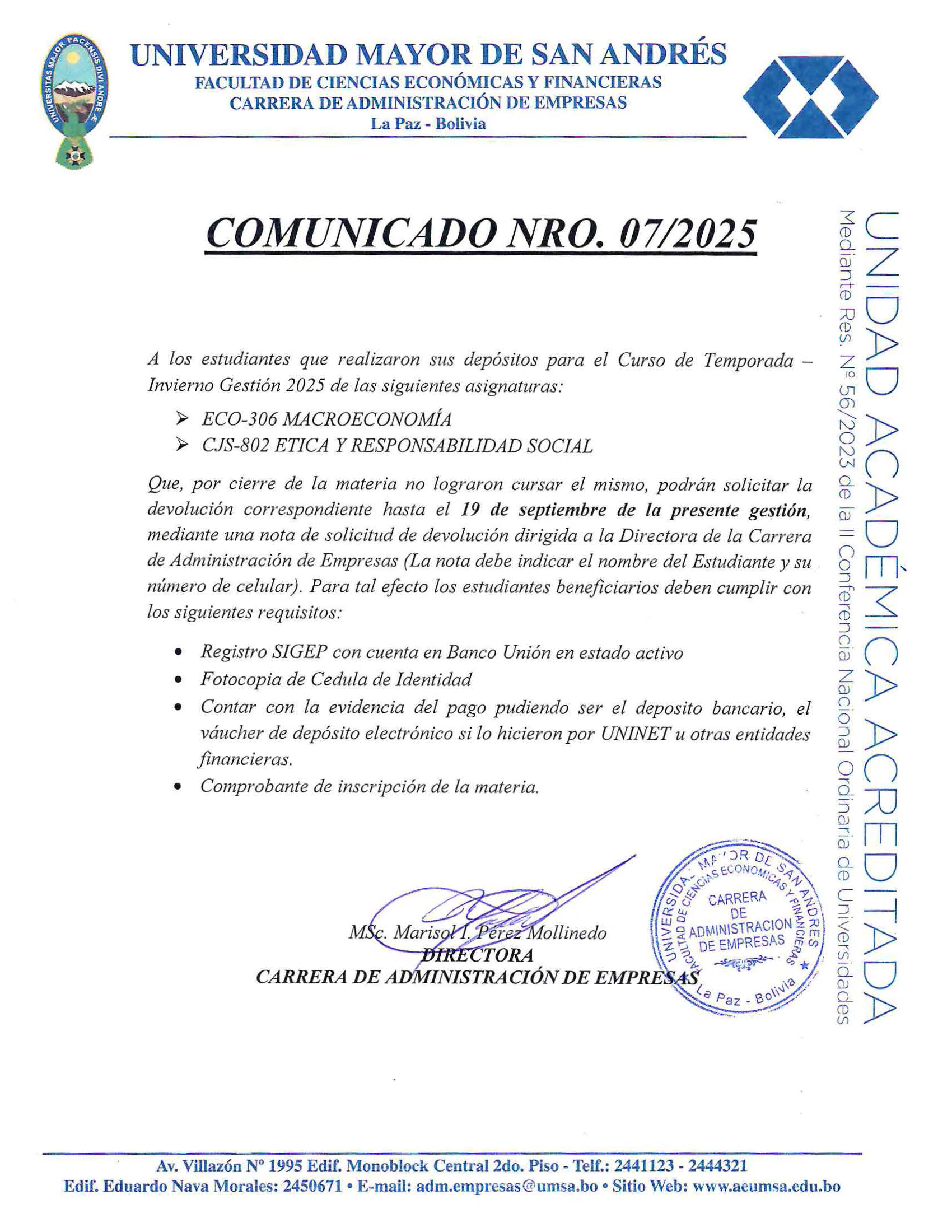 COMUNICADO CURSO DE INVIERNO 2025