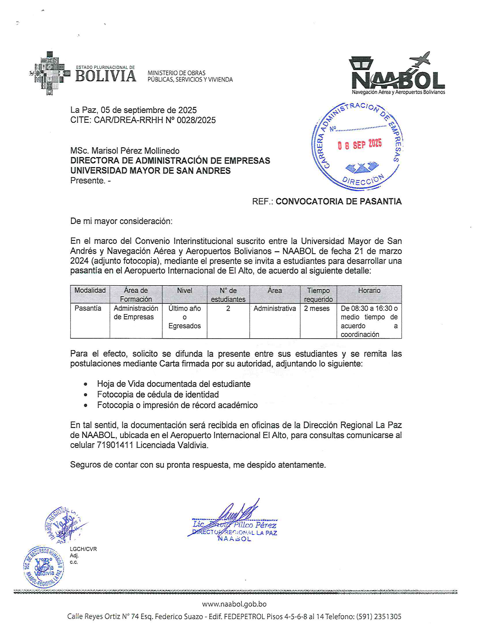 CONVOCATORIA A PASANTÍAS * NAABOL