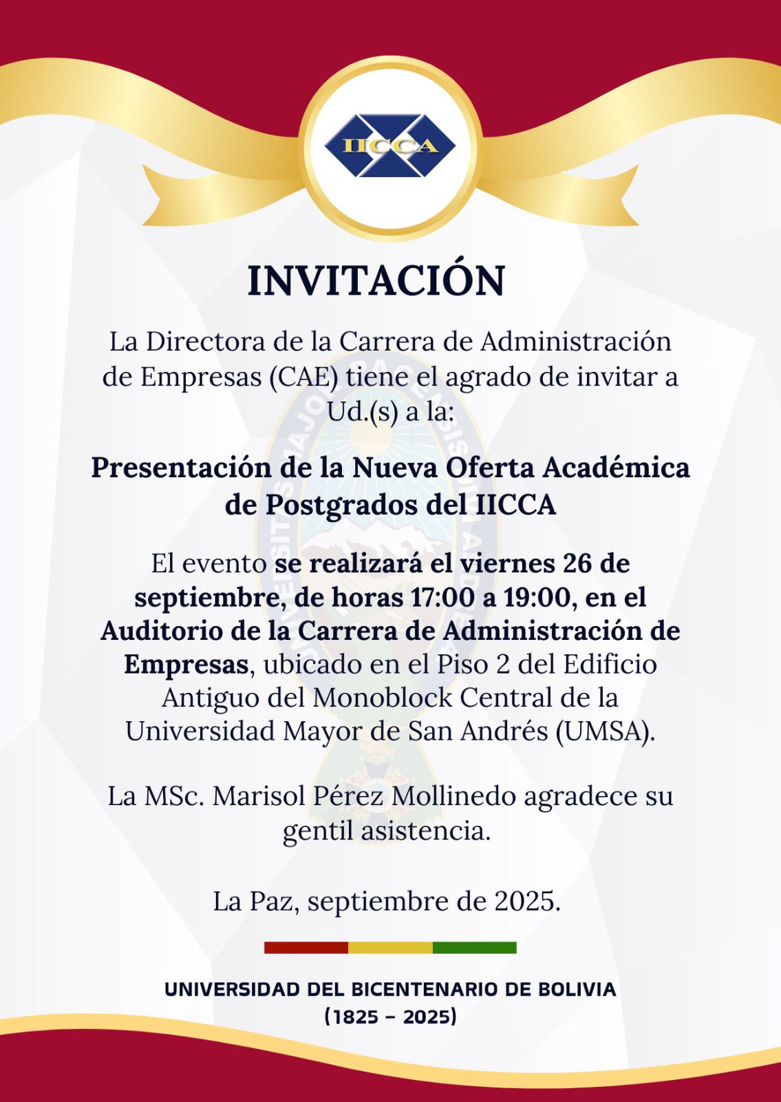 Navegación de entradas Feliz Día del Estudiante SORTEO DE BOLOS – EXAMEN DE GRADO 26 DE SEPTIEMBRE DEL 2025 *ÁREA: DE COMPLMENTACIÓN CUANTITATIVA