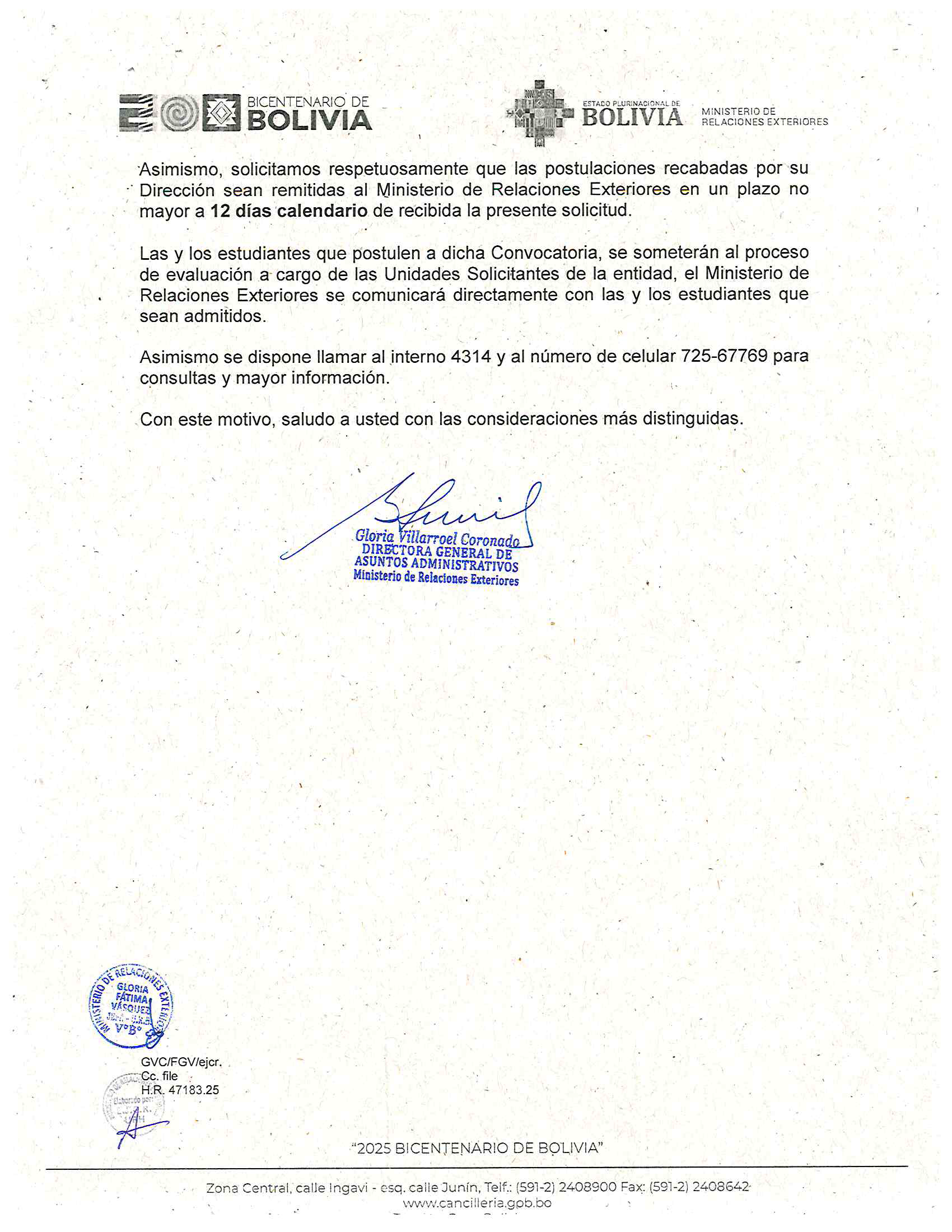 CONVOCATORIA A PASANTÍAS EN EL MINISTERIO DE RELACIONES EXTERIORES
