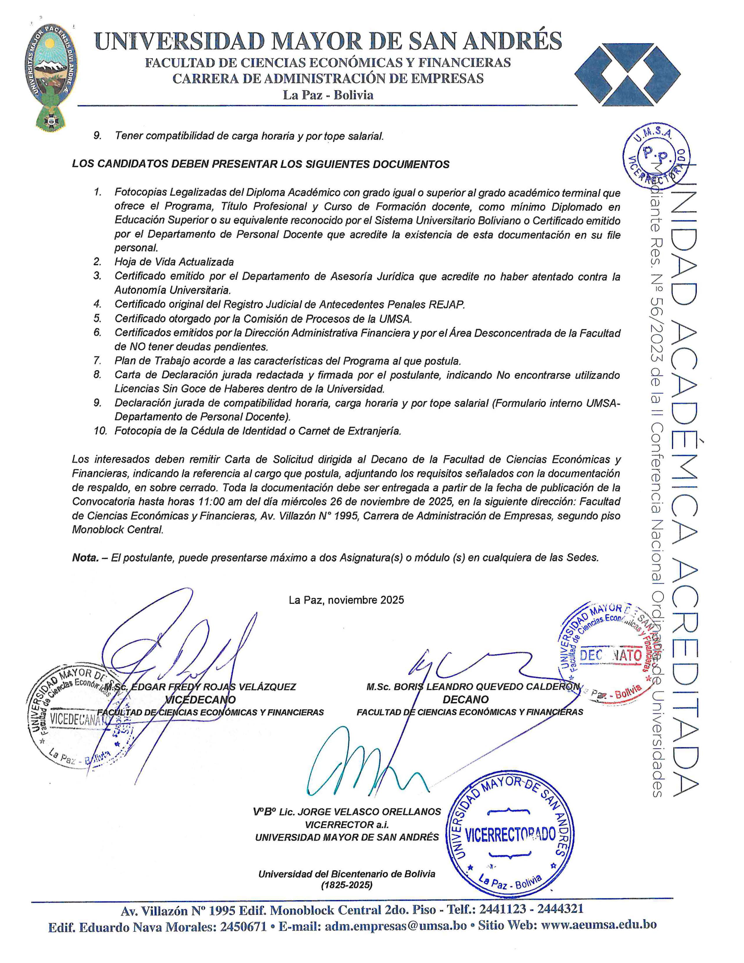Navegación de entradas ENCUESTA DE SATISFACCIÓN DE LA GESTIÓN INSTITUCIONAL CONVOCATORIA Nº 001 CONCURSO DE MÉRITOS Y EXAMEN DE COMPETENCIA PARA AUXILIARES DE DOCENCIA GESTIÓN ACADÉMICA 2026
