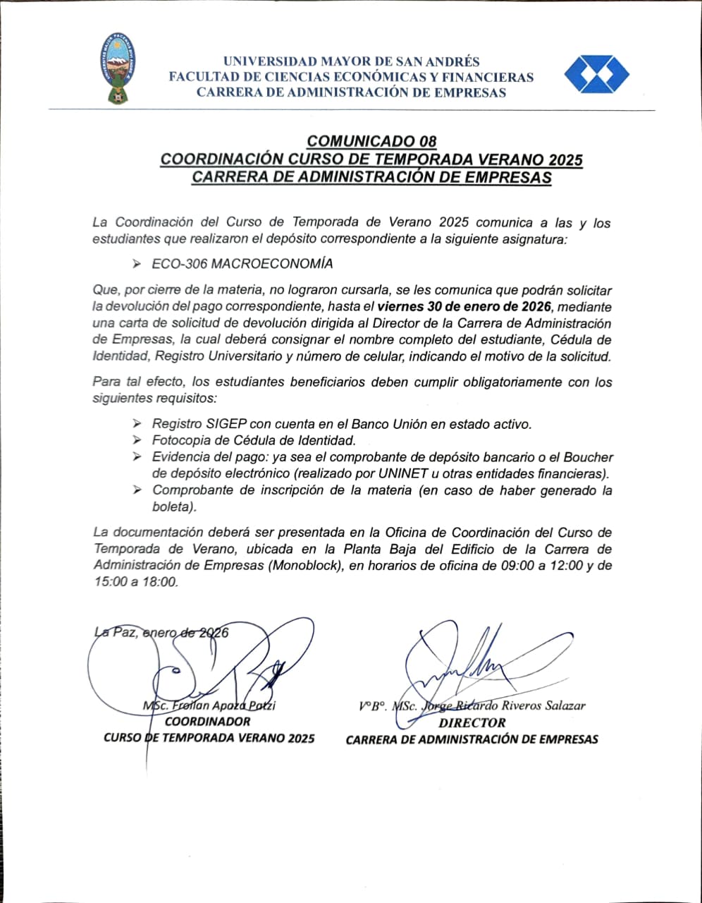 COMUNICADO 08 / 2026 CURSO DE TEMPORADA VERANO