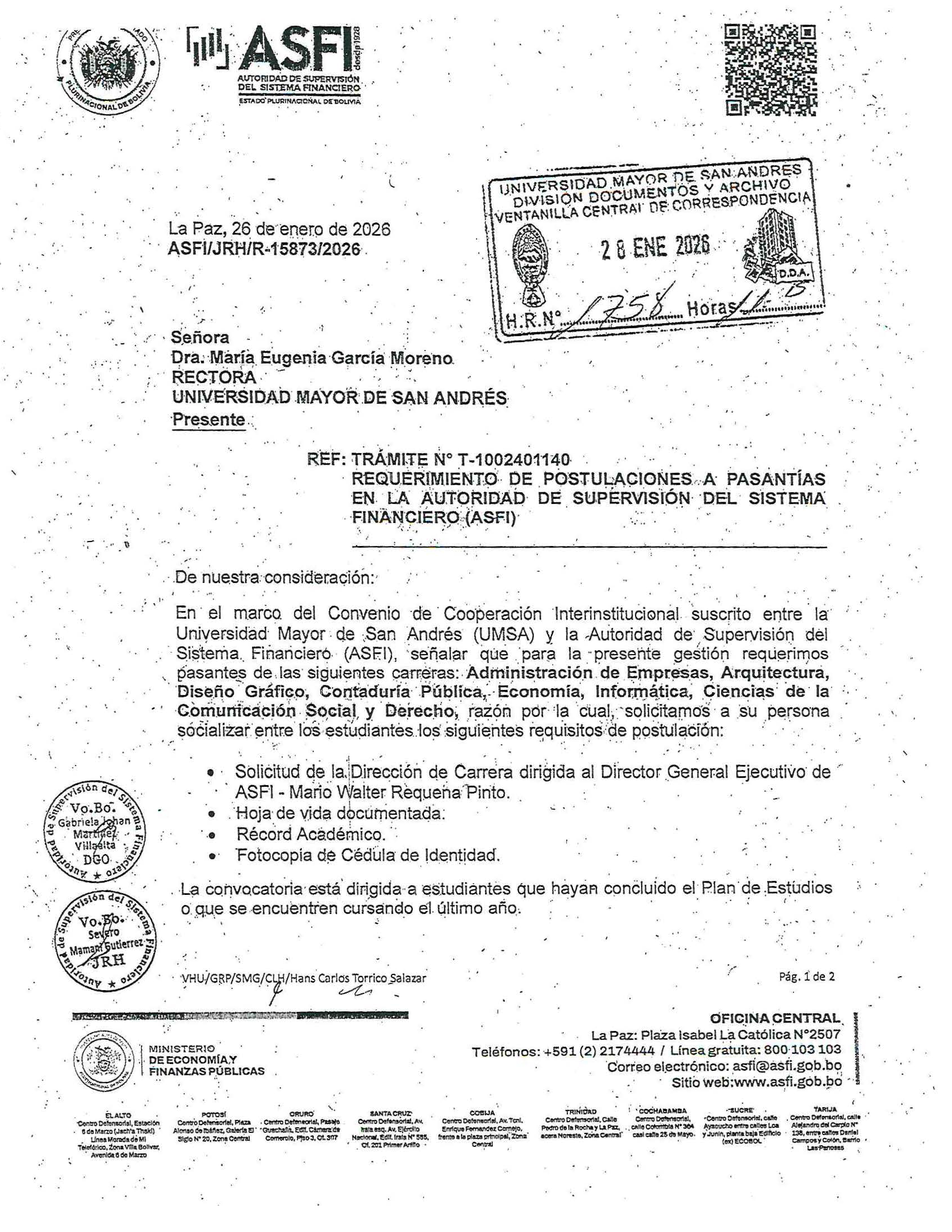 Navegación de entradas SOLICITUD DE ESTUDIANTES EN MODALIDAD DE TRABAJO DIRIGIDO PRIMERA CONVOCATORIA A PASANTÍA TRABAJO DIRIGIDO, PROYECTO DE GRADO O TESIS 2026 DEL GOBIERNO AUTÓNOMO DEPARTAMENTAL DE LA PAZ.