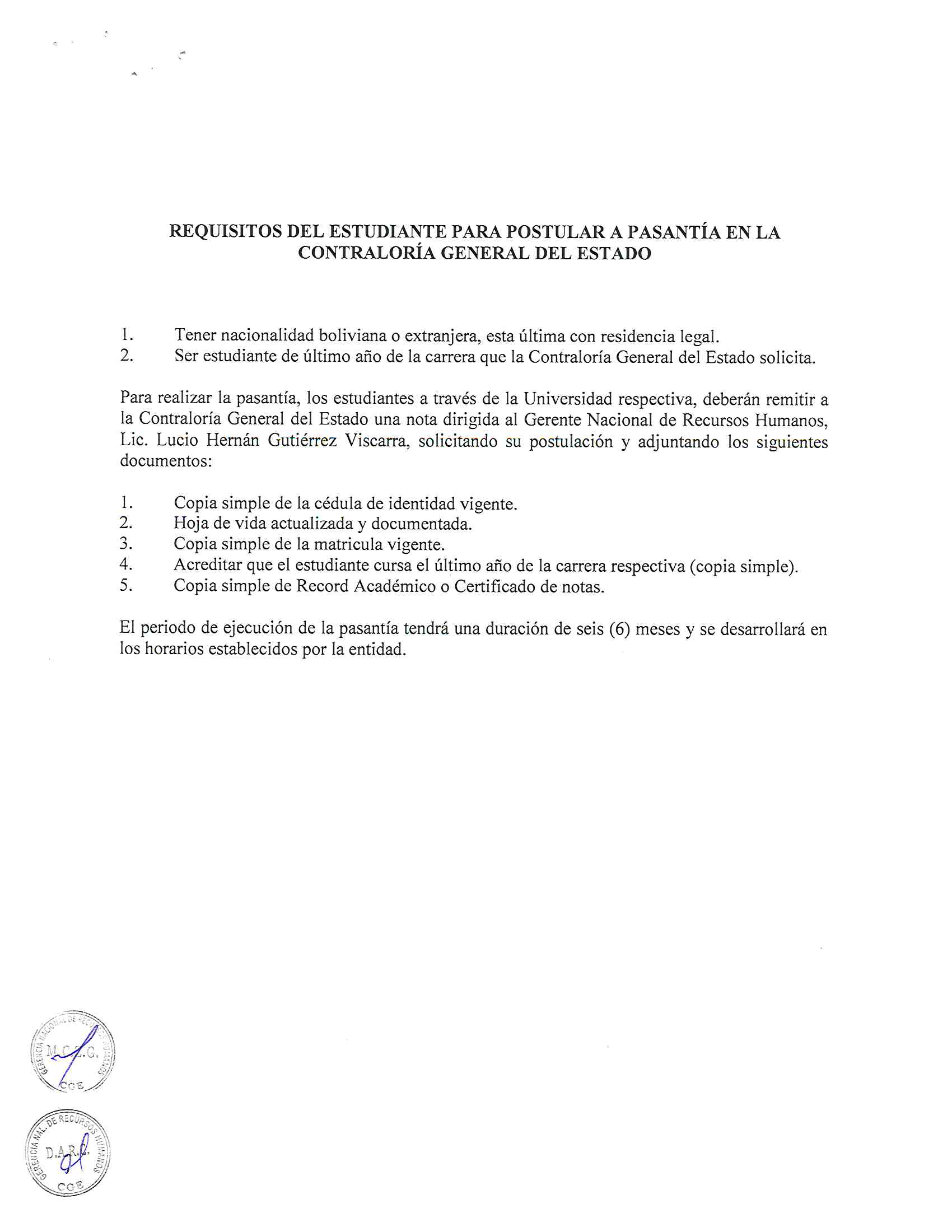 Navegación de entradas REQUISITOS PARA PRÁCTICA LABORAL (MODALIDAD: PASANTÍA VOLUNTARIA) DURACIÓN: TIEMPO MÍNIMO 6 MESES CONVOCATORIA PARA LA REALIZACIÓN DE PASANTÍAS EN EL MINISTERIO DE RELACIONES EXTERIORES