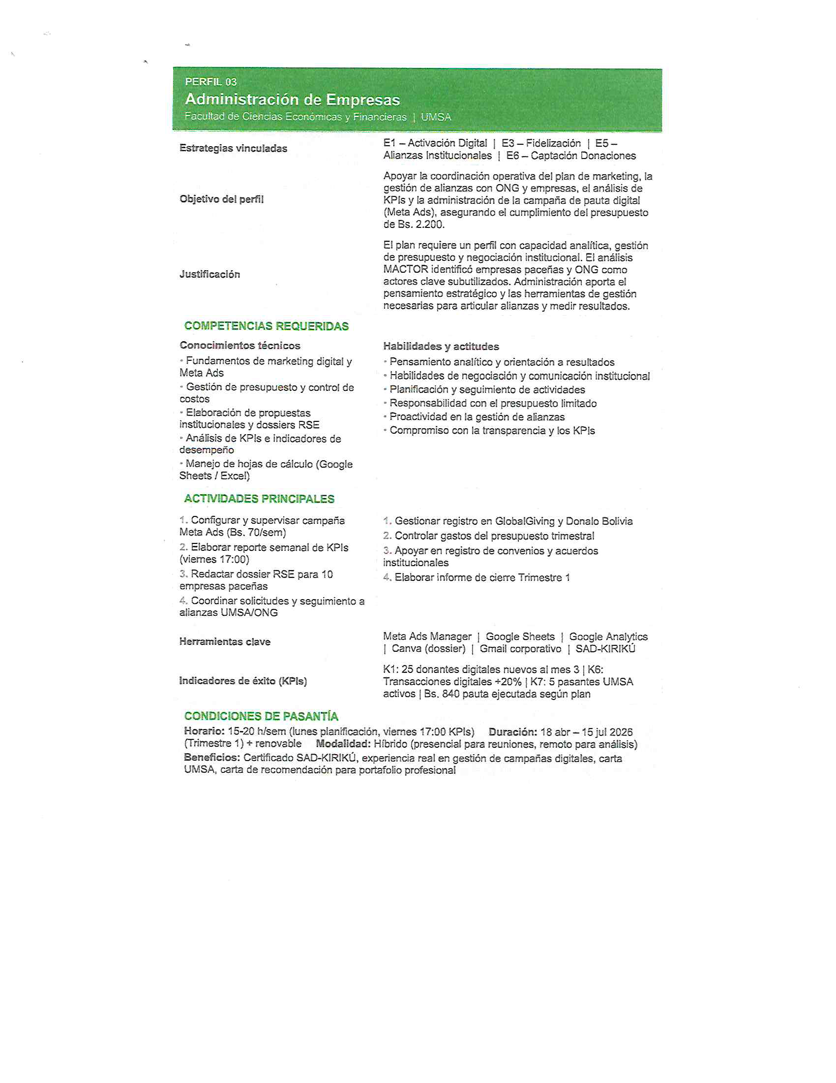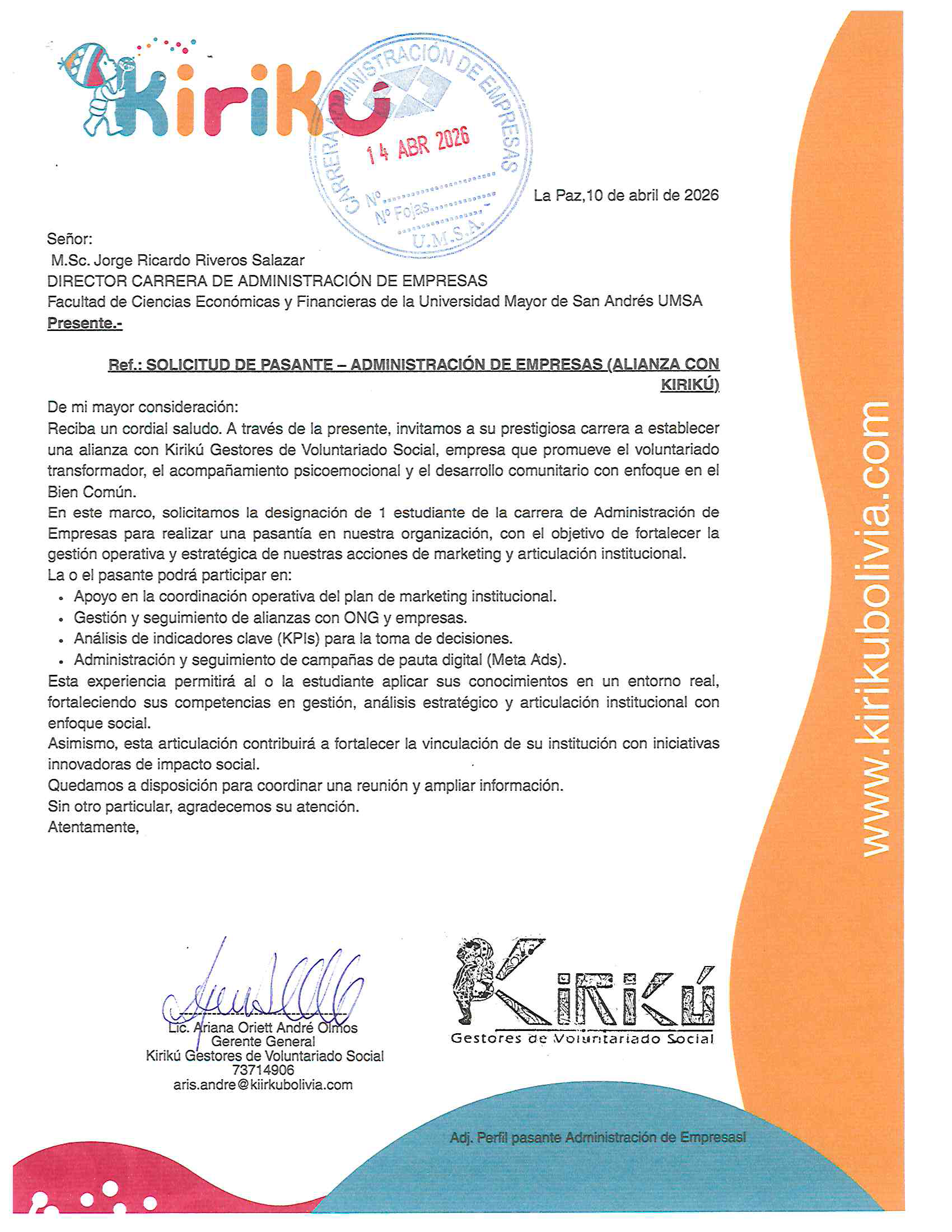 SOLICITUD DE PASANTE – ADMINISTRACIÓN DE EMPRESAS (ALIANZA CON KIRIKÚ)