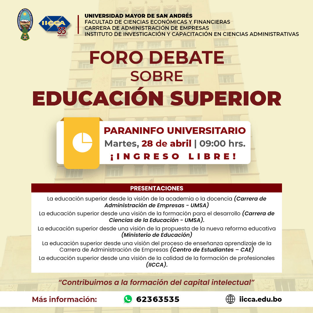 El IICCA te invita a ser parte del Foro Debate sobre Educación Superior, un espacio para el pensamiento crítico y la construcción del futuro de nuestra universidad y nuestro país.