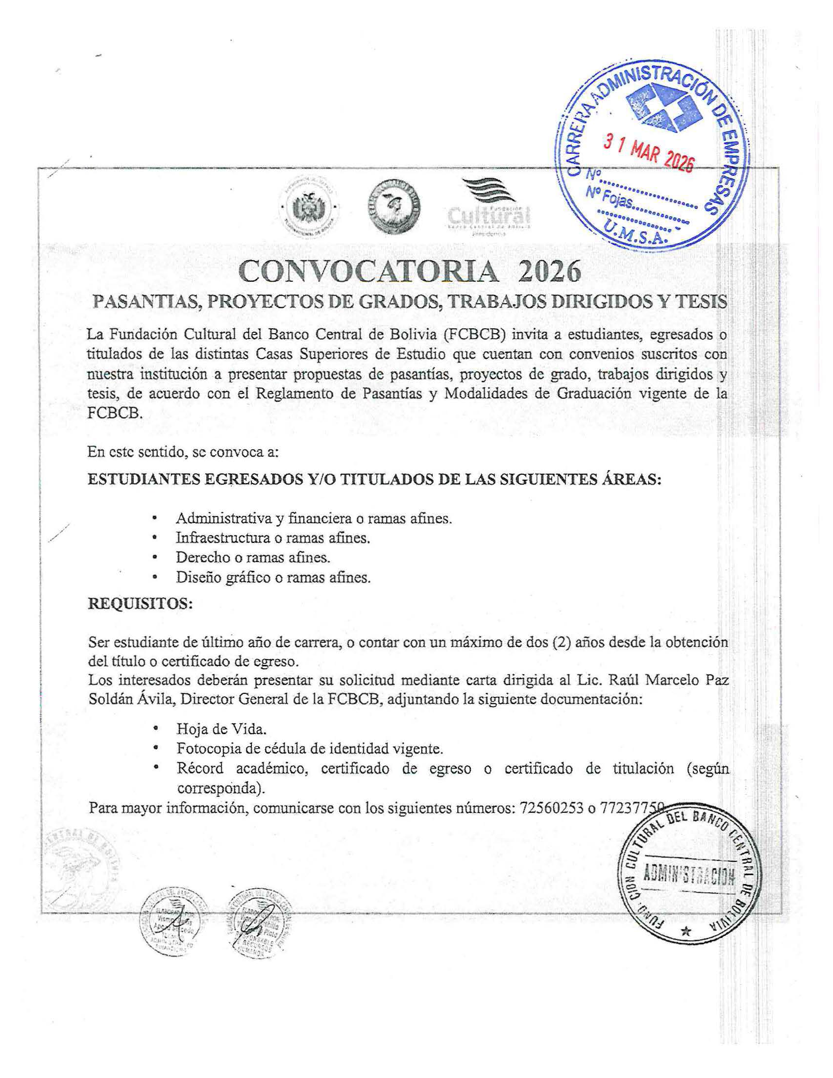 EXAMEN ESCRITO EXAMEN ORAL MATERIA DOCENTE 1 DOCENTE 2 FECHA HORA FECHA HORA POSTULANTES- NRO C.I.…